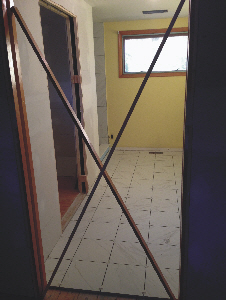 ![]() "X" to keep people out. Gate put at entrance to bedroom to keep dogs out, and hopefully deter cats! |
