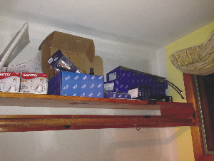 ![]() baseboard and shoe, repurposed from old closets, installed in vestibule | ![]() closet with rod and shelf repurposed from old closet.Full width possible having narrowed the shower to widen the closet. | ![]() bedroom side of closet. Loren's accommodation given the window trim. It would NOT have made sense to move this wall. |