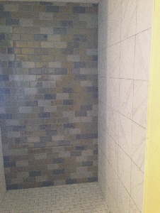![]() Hall light converted to recess. And dimmer now controls recessed light next to laundry. | ![]() 2 more rows of tile in, and switch to laundry room now decora | ![]() Electrical subpanel installed |